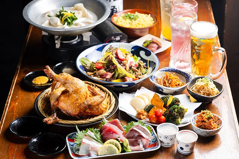 国産のひな鶏を素揚げした「ひな鶏半身揚げ」は当店の看板メニュー。